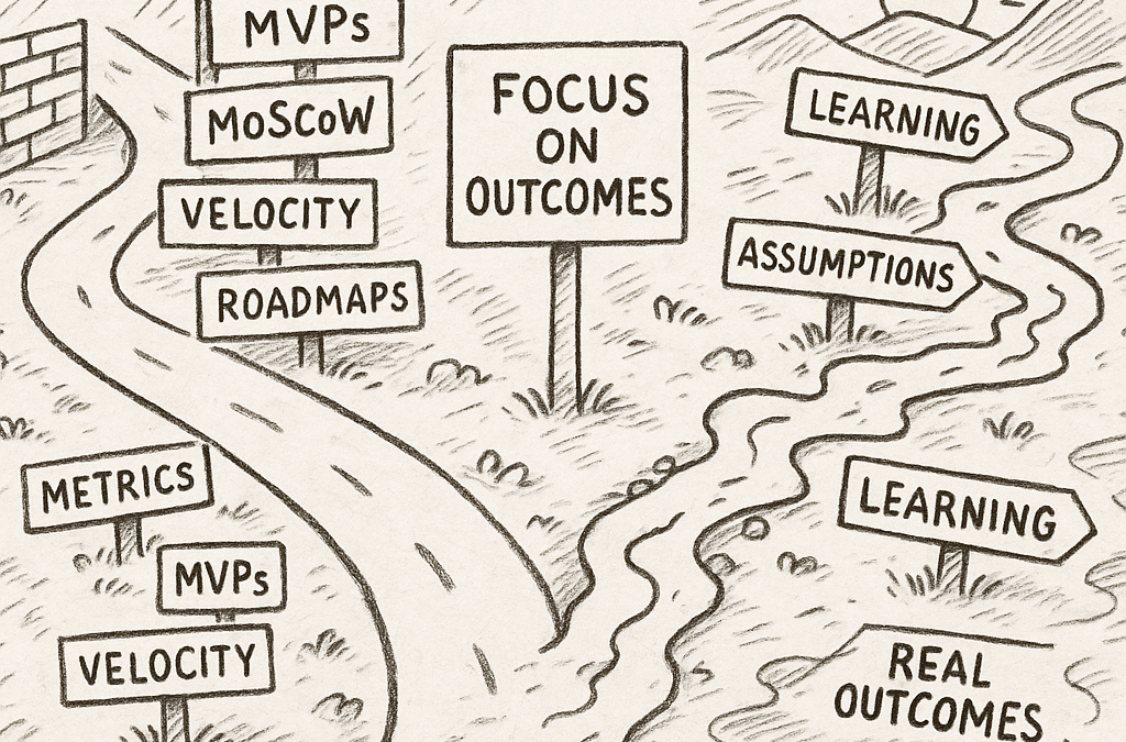 • Most teams talk about outcomes but still chase outputs. They optimize speed, not learning.